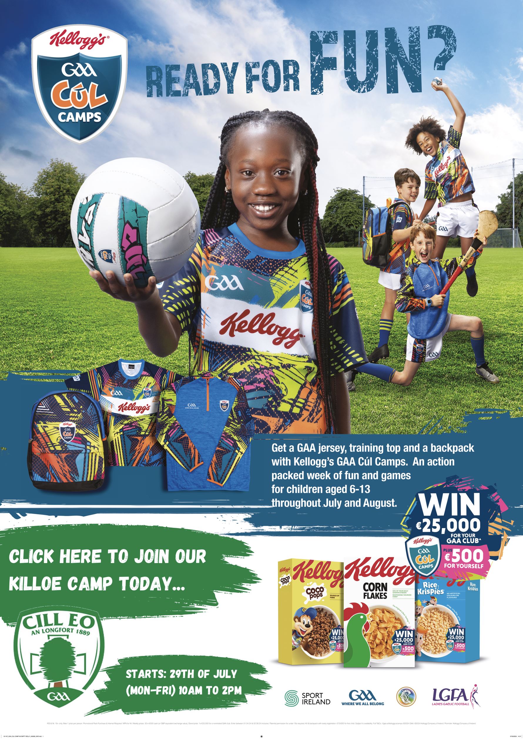 Registration is now open for the Kellogg’s Cúl Camp is now open! Click on the link to register your son/daughter now!